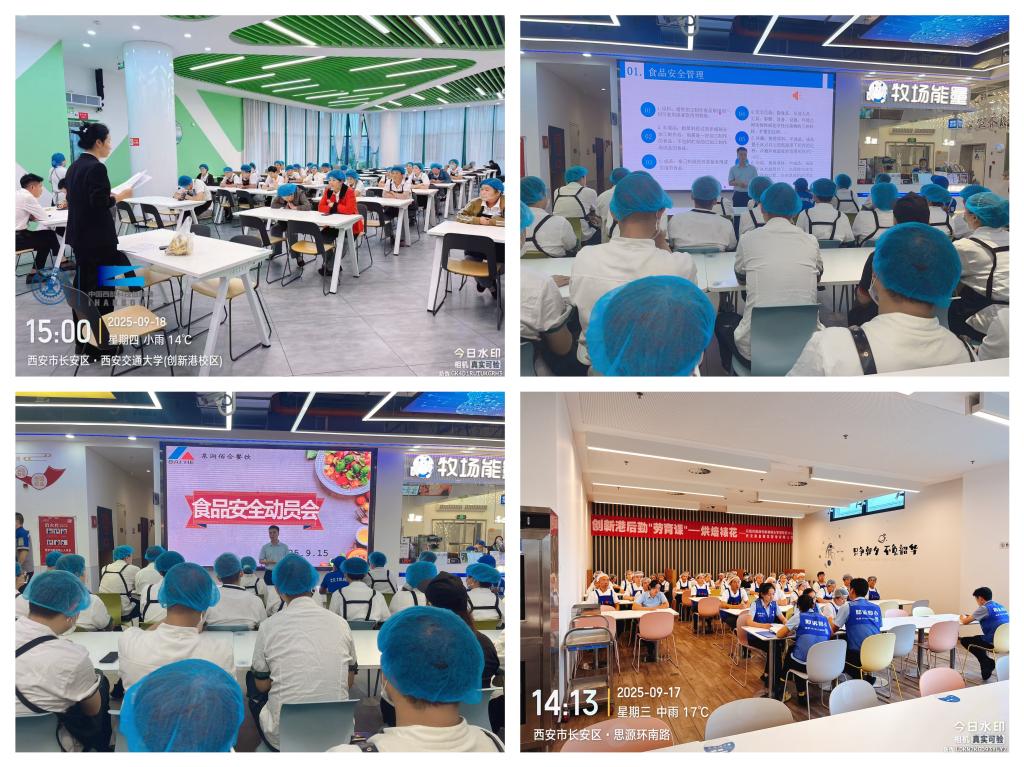 9月15日至19日,立异港分析办理办事核心环绕食物平安、反餐饮华侈,正在各食堂集中开展以“尚德守法 共享食安”为从题的“食物平安宣传周”系列勾当。开展普遍带动。9月15日,立异港分析办理办事核心组织召开立异港食堂食物平安工做带动会。核心从任巩滨做带动讲话,食堂办理人员及工做人员参会,食堂司理代表、厨师代表对食堂食物平安工做做讲话,各餐饮公司签定《立异港食堂秋季食物平安义务书》。
